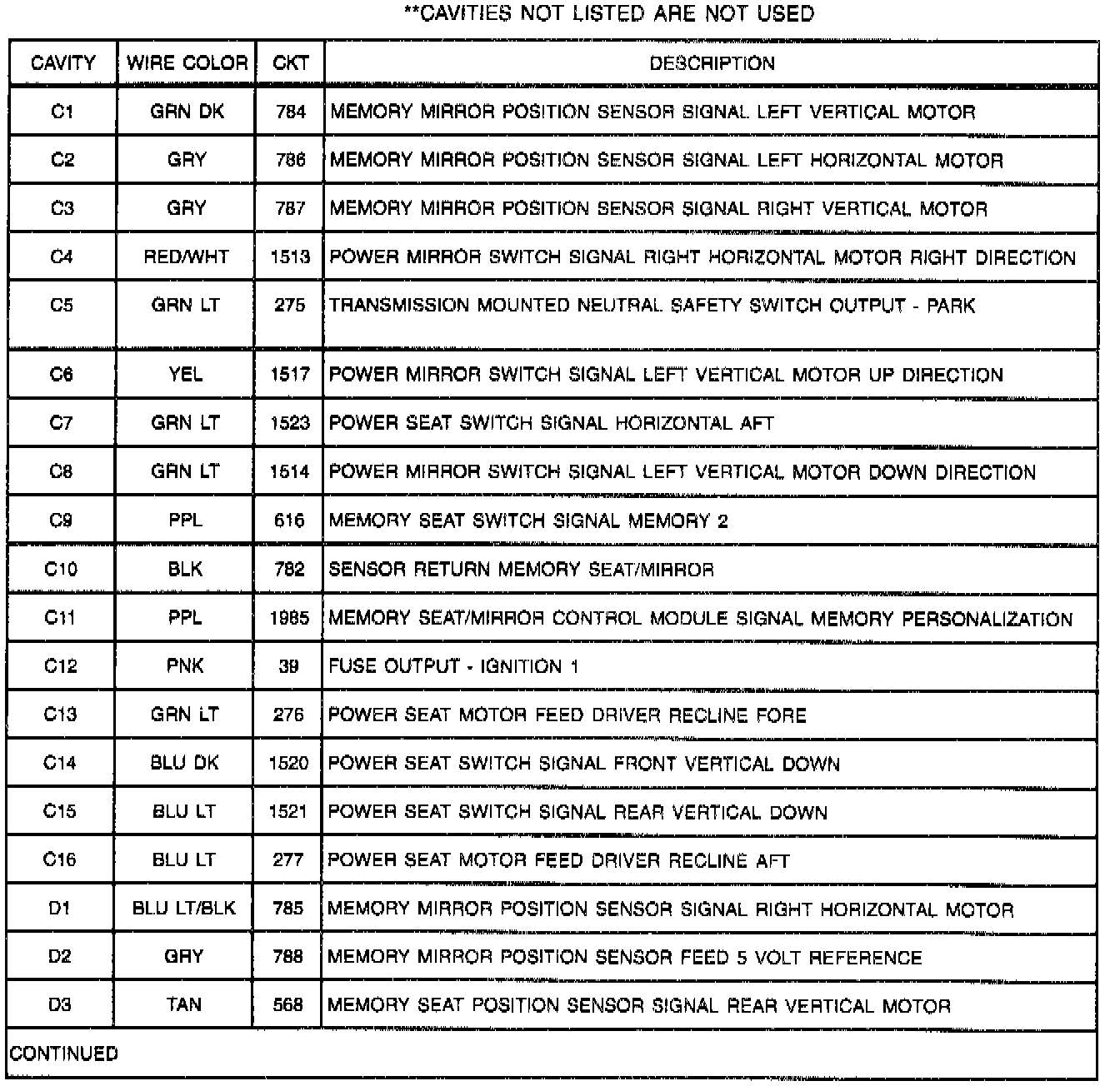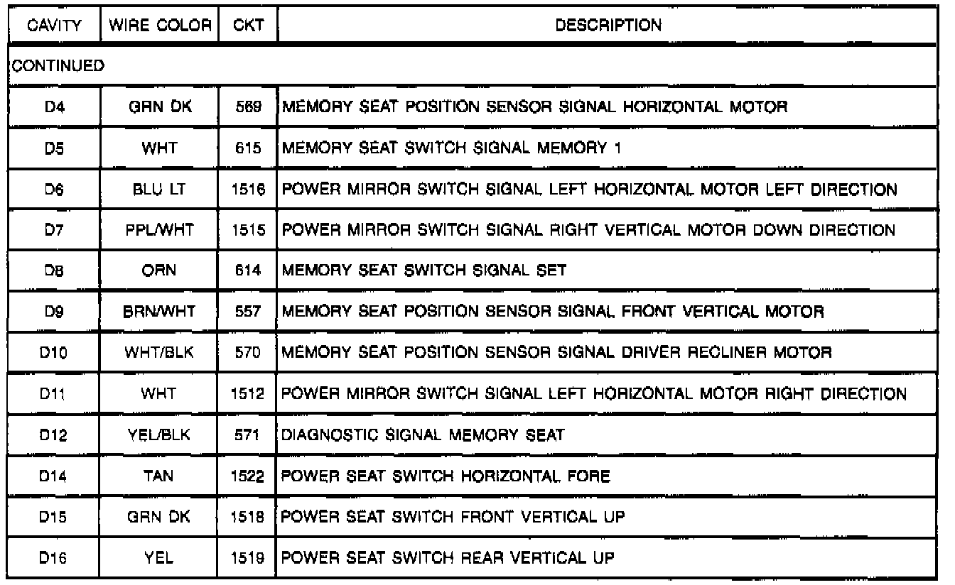 Memory Seat/Mirror Control Module C1, C2 And C3 (Part 2 Of 2):