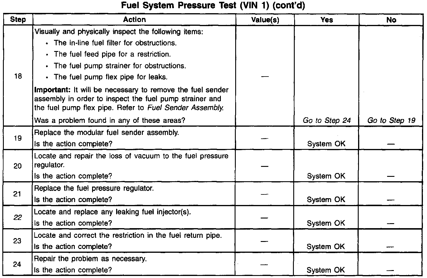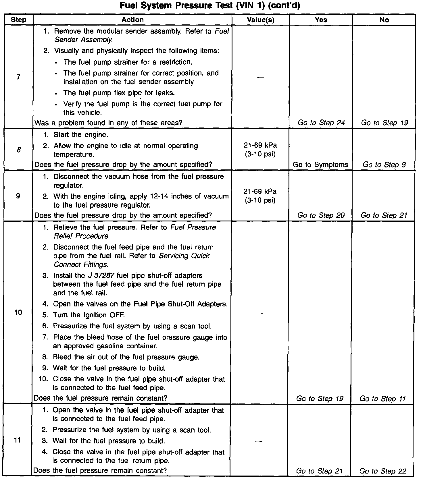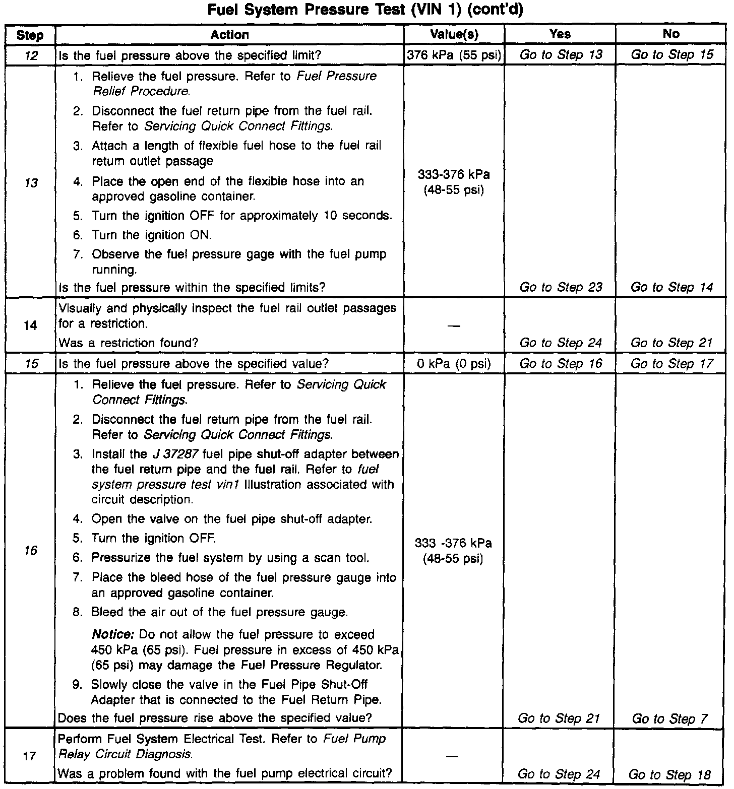 13. This test determines if the high fuel pressure is due to a restricted fuel return pipe or if the high fuel pressure is due to a faulty fuel pressure regulator.