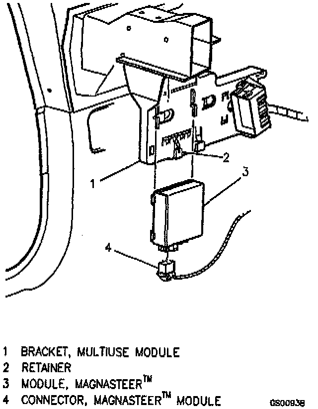 4. Magnasteer(TM) module from multi-use bracket by pressing in on retainer and sliding down and out of bracket.