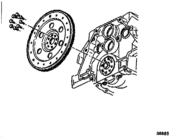 3. Remove the eight bolts attaching the flywheel to the crankshaft flange. Discard the bolts.