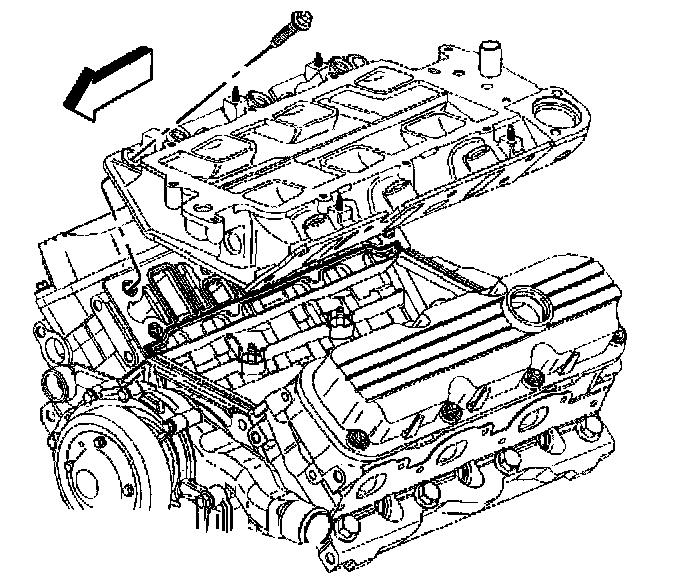 NOTICE: The two bolts which fasten the lower intake manifold to the cylinder head are accessible only after the upper intake is removed. The bolts are located in the right front and left rear corners of the lower intake manifold. Remove the upper intake manifold to service the lower intake.1. Remove the EGR outlet pipe from the intake manifold.