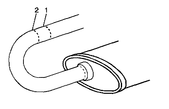 2. Make the cut (1) close to the catalytic convertor when replacing the catalytic convertor.