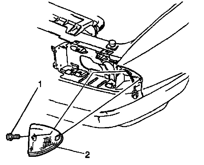 2. Remove the screw (1) that retains the cornering lamp (2) to the fender.