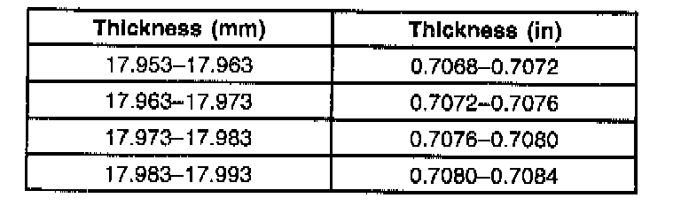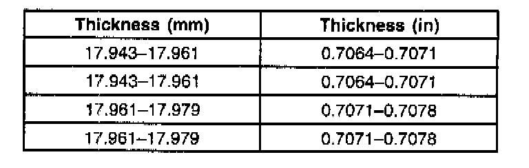 The oil pump assembly has a selective rotor, vane and slide components. These components are chosen based on pump body dimensions. Oil pump body, rotor, vane and slide components are available in four size classifications (1,2,3 and 4).Rotor, vanes and slide must be chosen in the same size classification to match the oil pump body. Allowable rotor, vane and slide end play to the oil pump body are as follows: