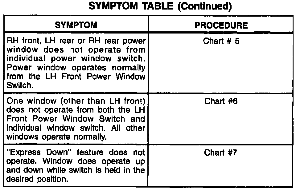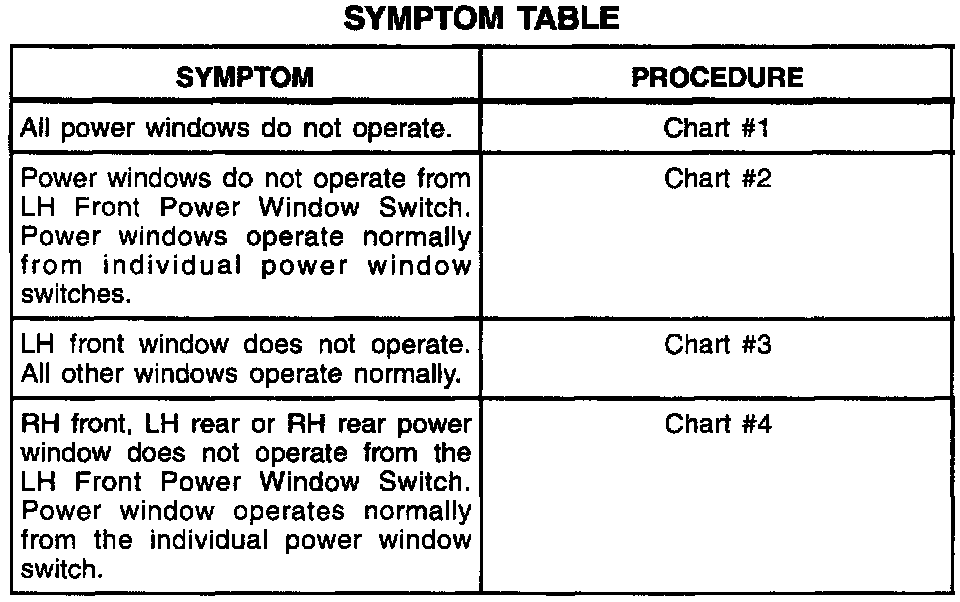A Symptom Table - Power Windows
