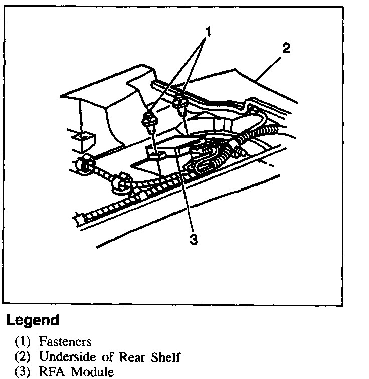 2. Two push in retainers securing RFA module to bottom of package shelf.