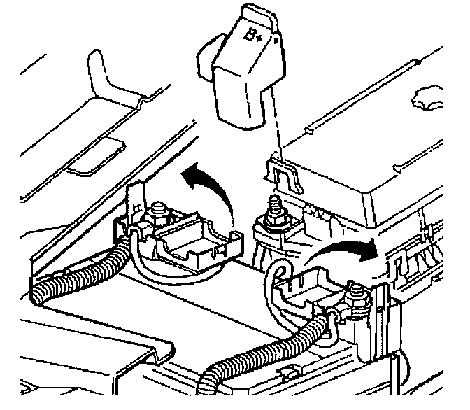 5. Disconnect the positive battery cable from the positive battery terminal on the underhood junction block.
