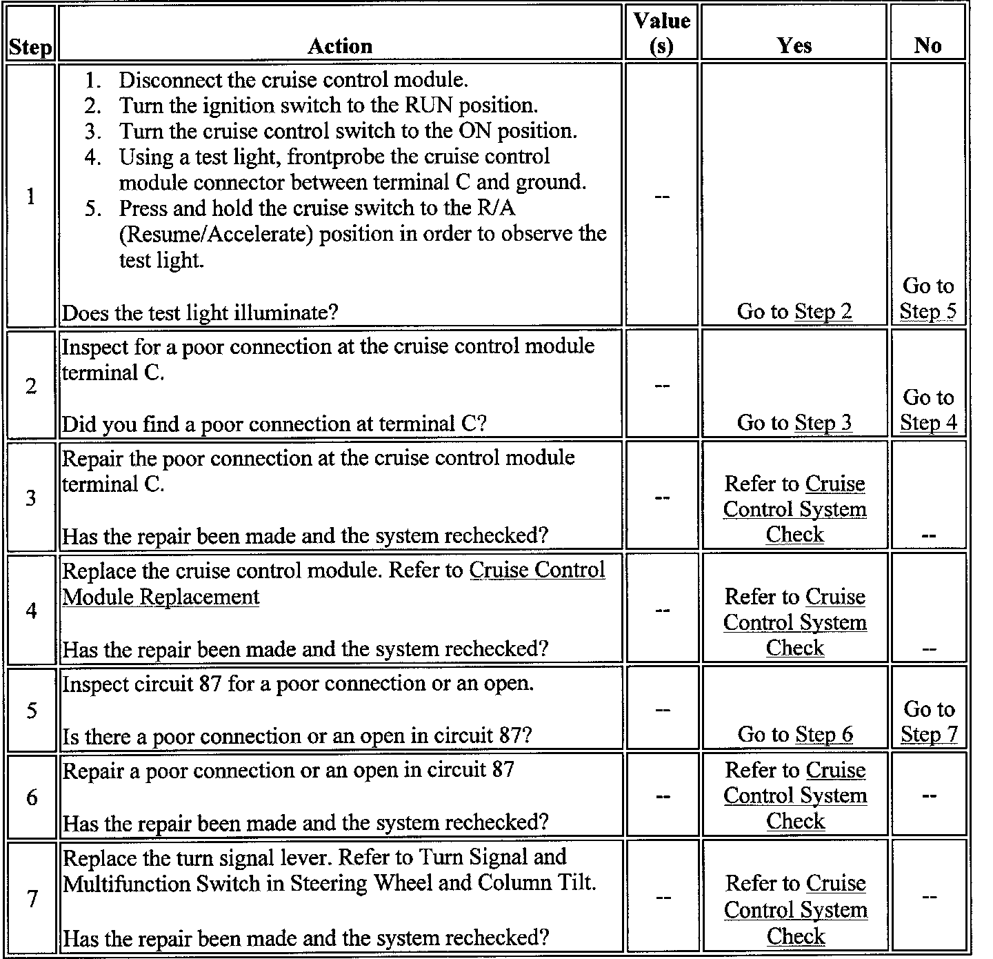 Cruise Control Does Not Resume, Accel, Tap Up or Down