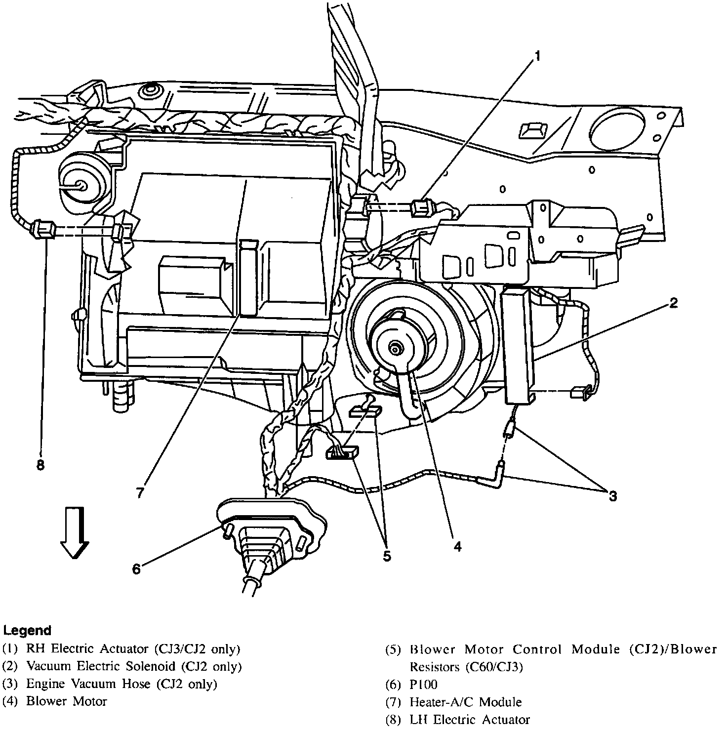Behind Center Of I/P (CJ2 Shown, C60/CJ3 Similar):