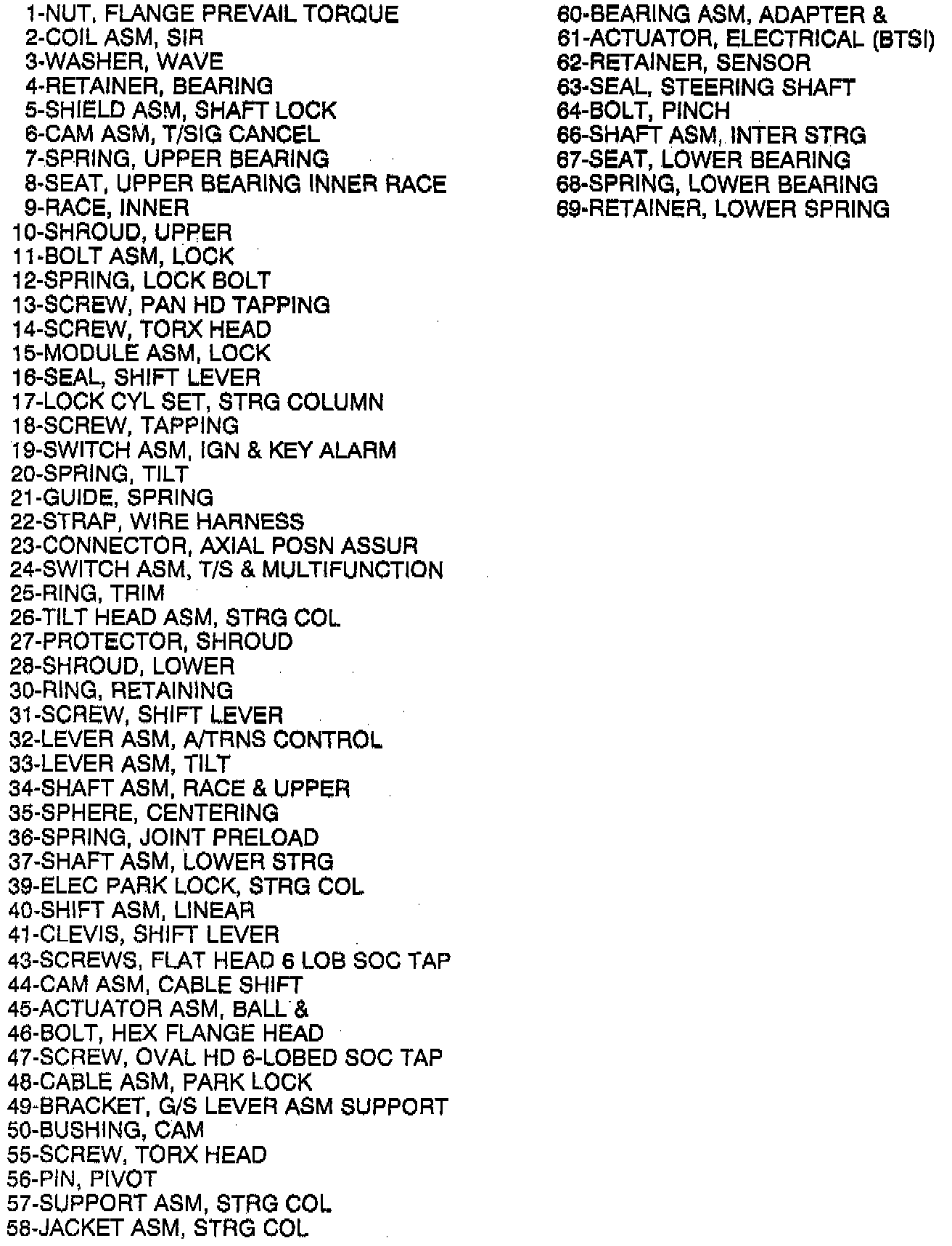 Tilt Steering Column - Legend - Part 2 Of 2: