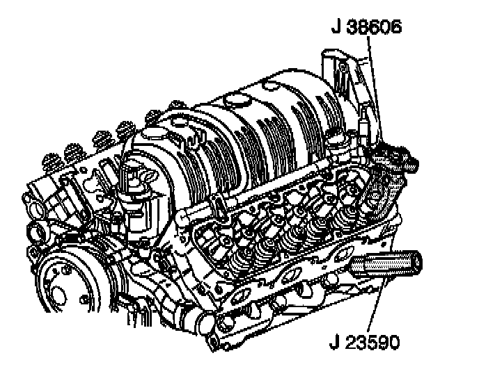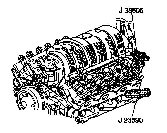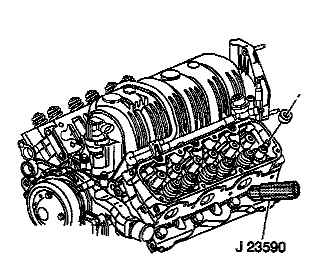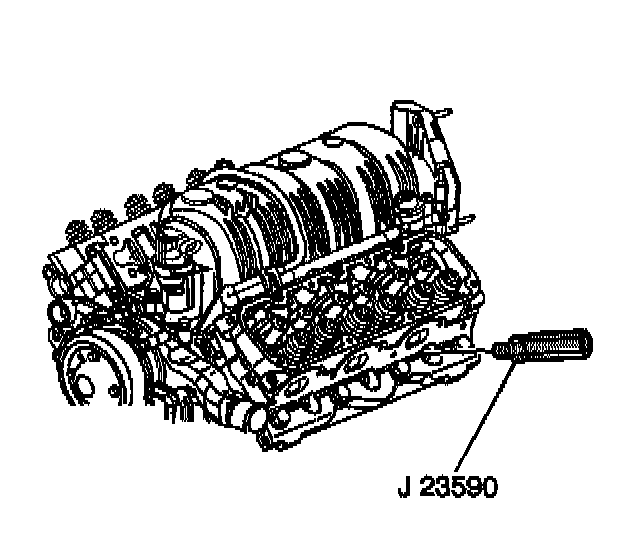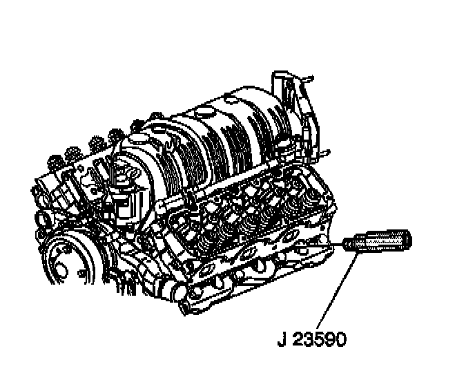 4. Install the J 23590 to the spark plug port and apply compressed air in order to hold the valves closed.