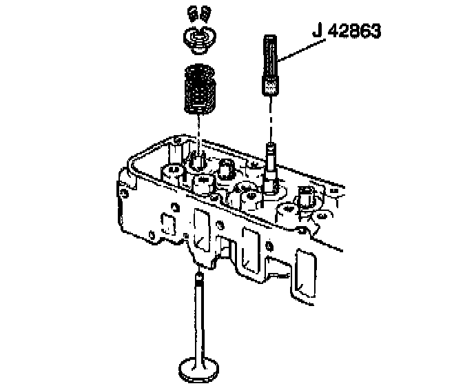 2. Push the valve stem oil seal over the valve guide using the J42863 until the tool bottoms on the valve spring seat.