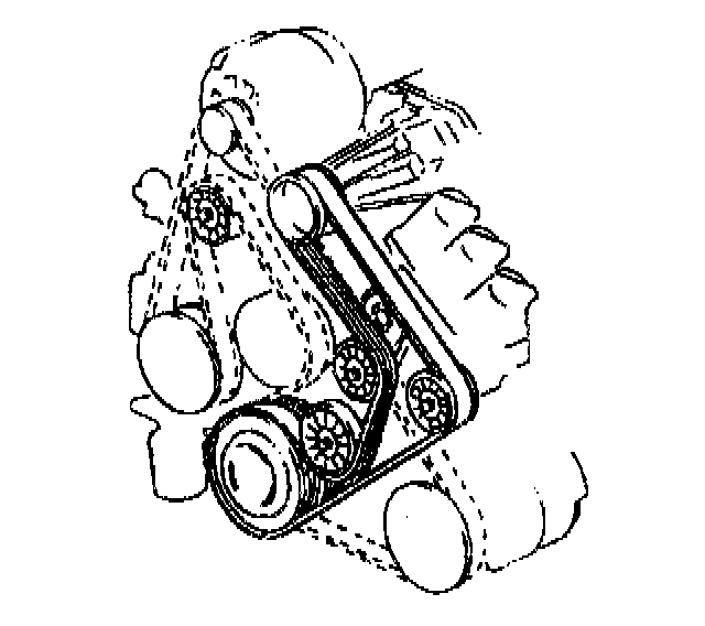 All driven accessories rigidly mount to the engine. Spring-loaded belt tensioners maintain the drive belt tension. Each drive belt has its own tensioner. A drive belt squeak, occurring when the engine starts or stops, is normal and has no effect on the durability of the drive belt. The drive belt tensioner can control the drive belt tension over a broad range of drive belt lengths, due to stretching. However, there are limits to the tensioner's compensation ability. Poor tension control and/or damage to the tensioner may occur after using the tensioner outside of its operating range. Replace the drive belt when this occurs.