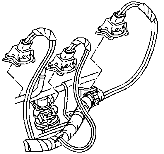 9. Install the fuel injector electrical harness clips holding harness to front of fuel rail.