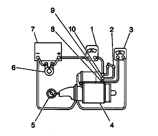 4. Connect a voltmeter (3) from the starter motor terminal to the starter motor frame (ground).