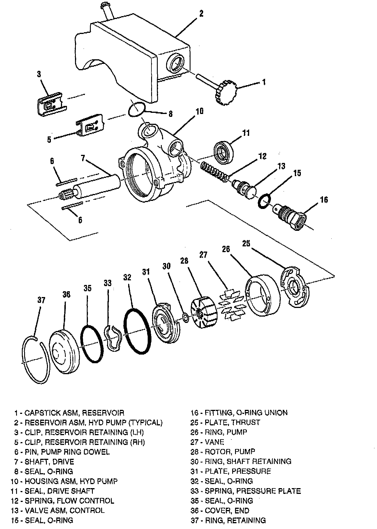 4. Fitting (16) into hydraulic pump housing assembly (10).