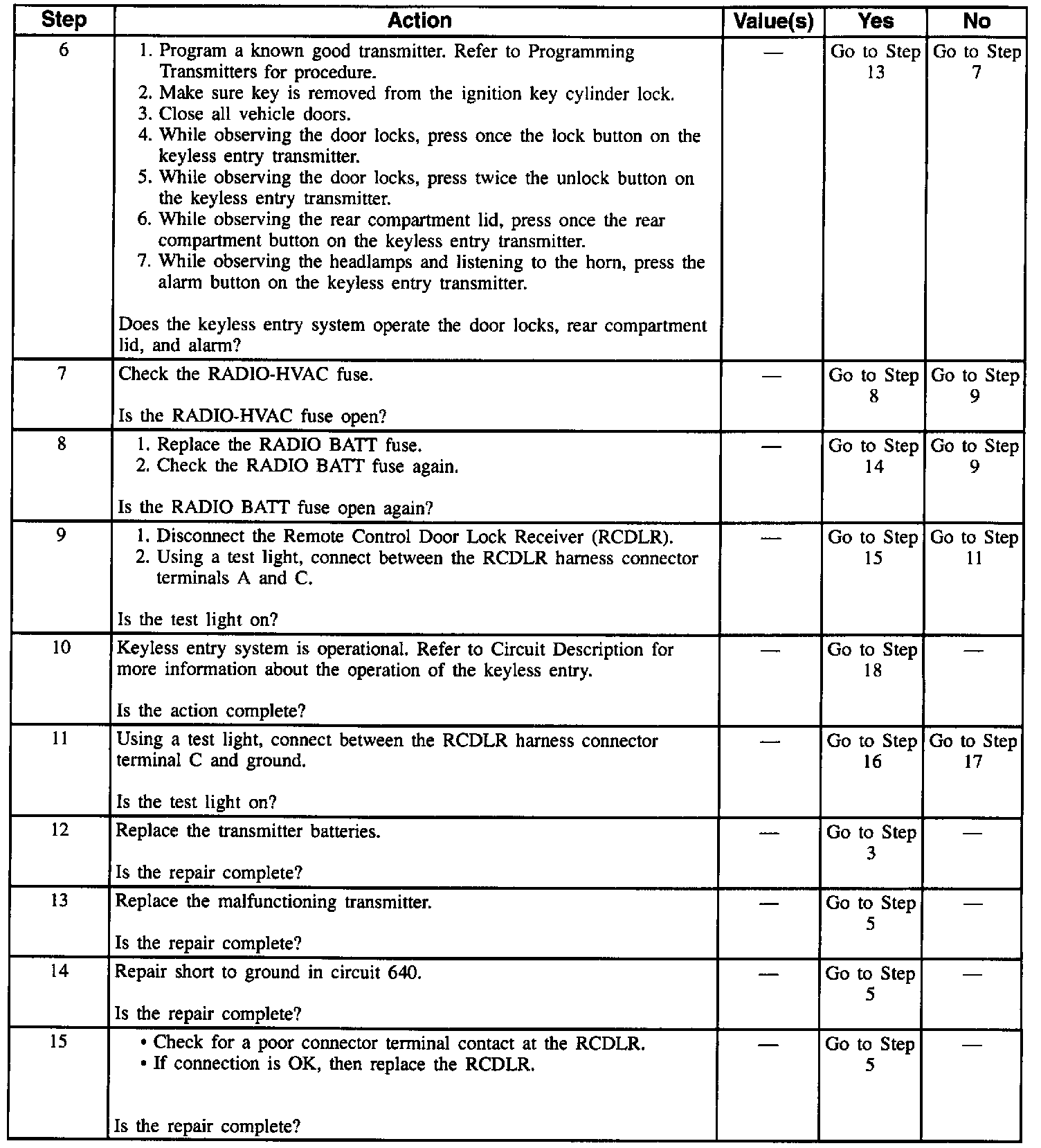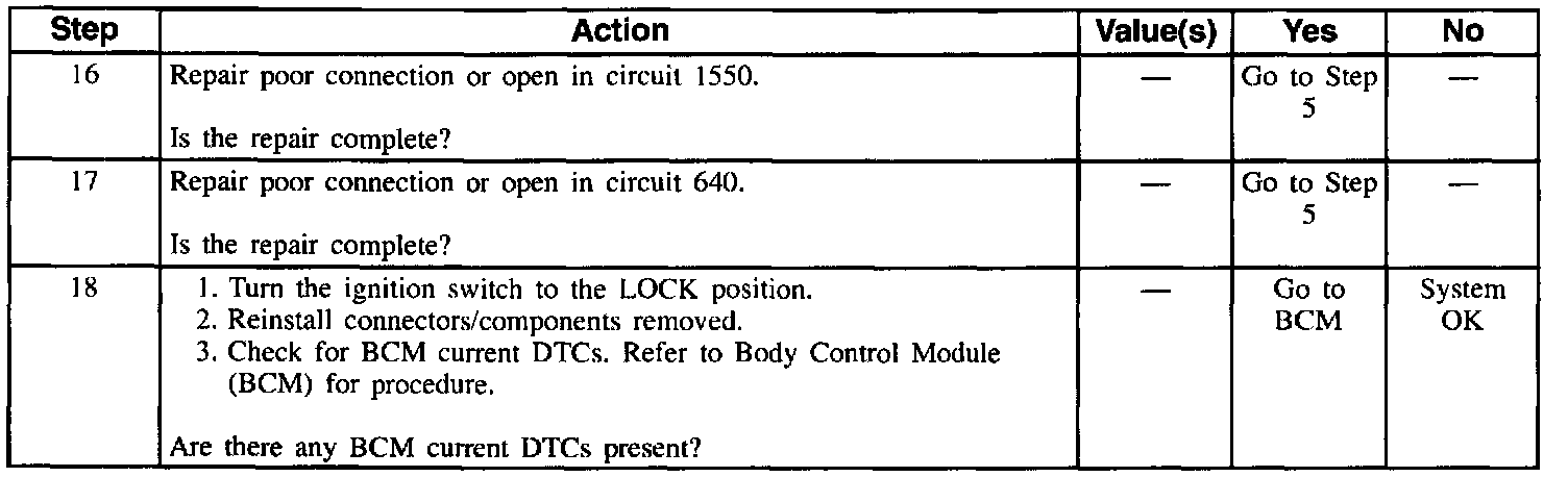 Table 2 Keyless Entry System Completely Inoperative (Part 2 Of 3):