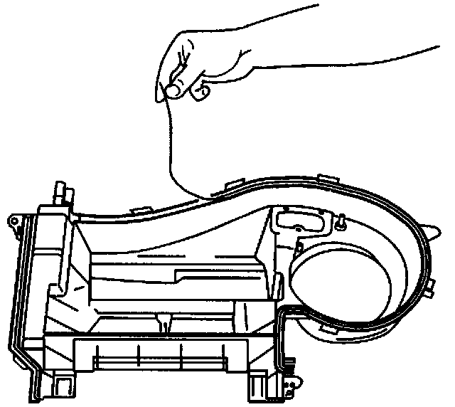 ^ Wet the upper evaporator core seal with water to ease assembly of the upper blower case to the lower blower case.