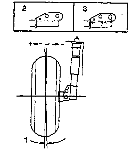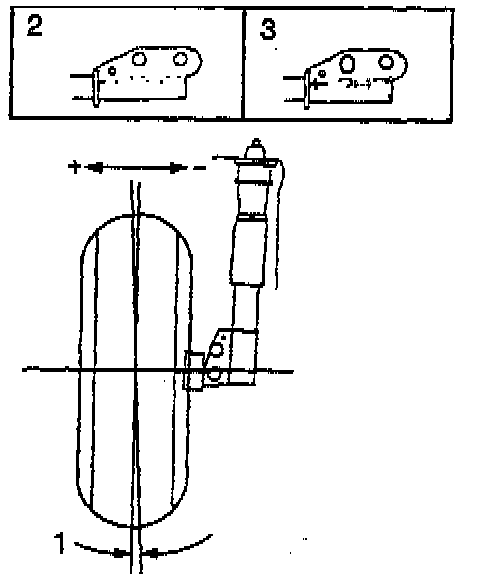 ^ File the upper strut-to-knuckle attaching hole for a rear camber adjustment (as in the second illustration).