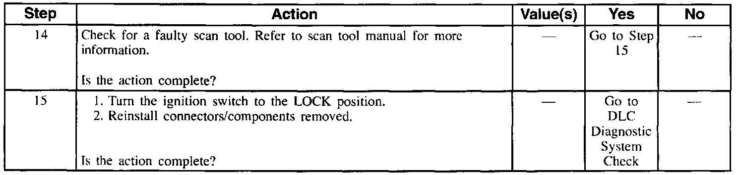 Table 1 Scan Tool Inoperative; No Power At DLC (Part 2 Of 2):