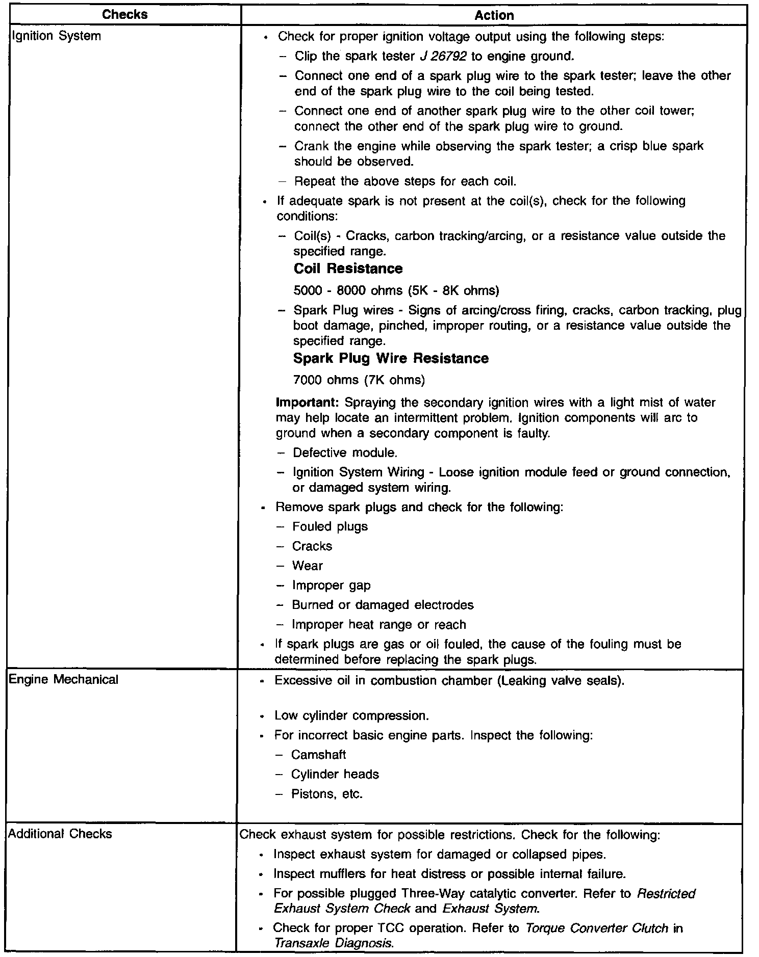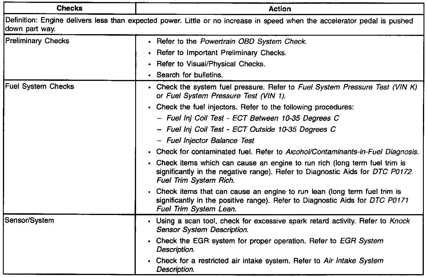 Lack of Power/Sluggish/Spongy/Stumble