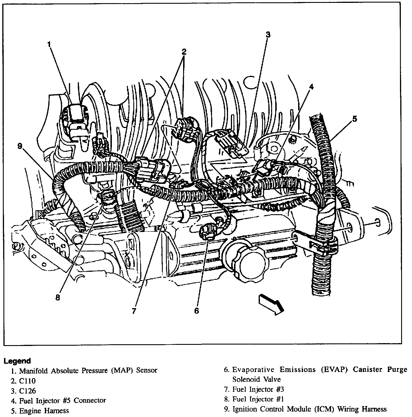 Top Front Of Engine: