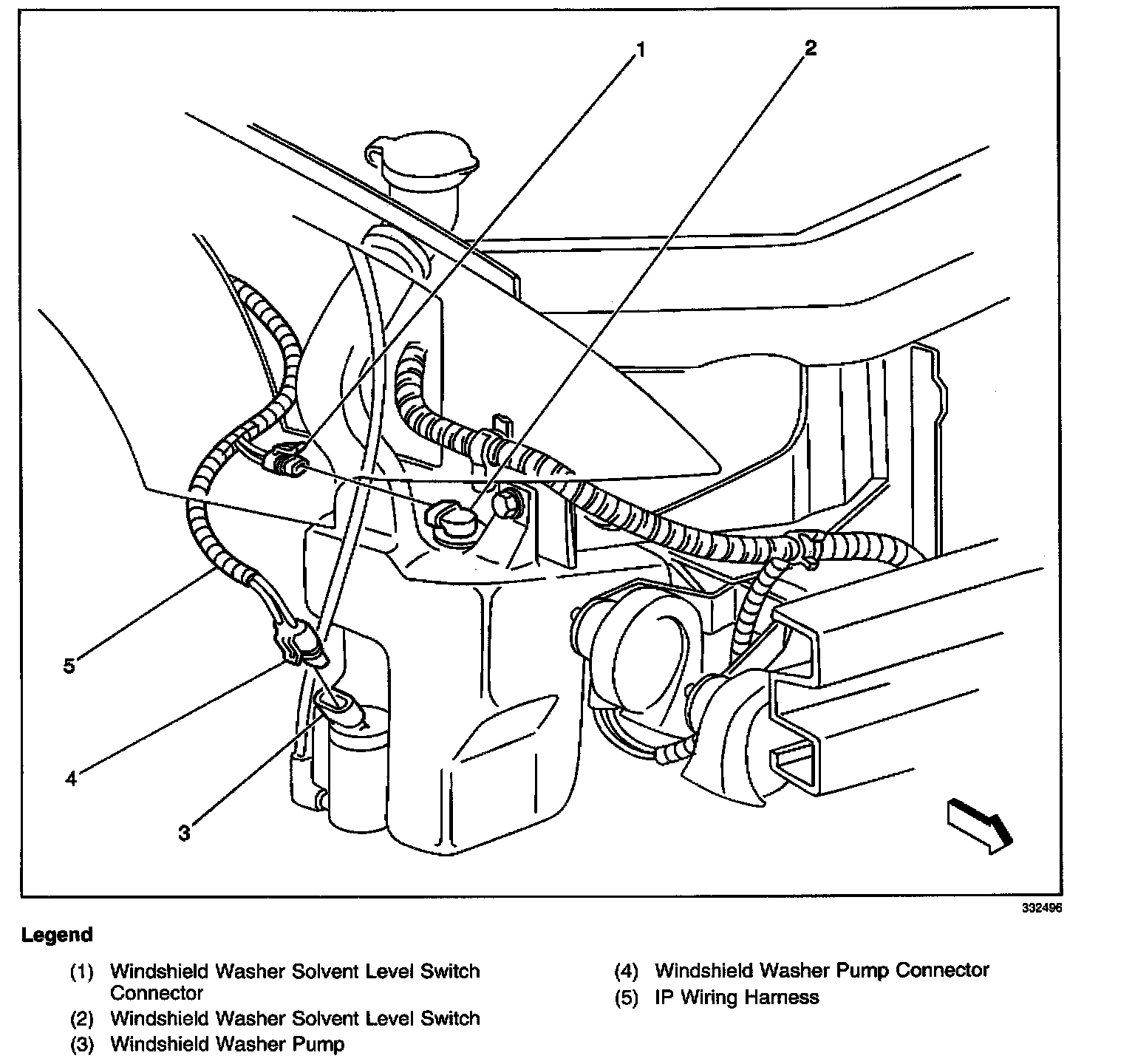 Windshield Washer Components - Inside RF Fender Line: