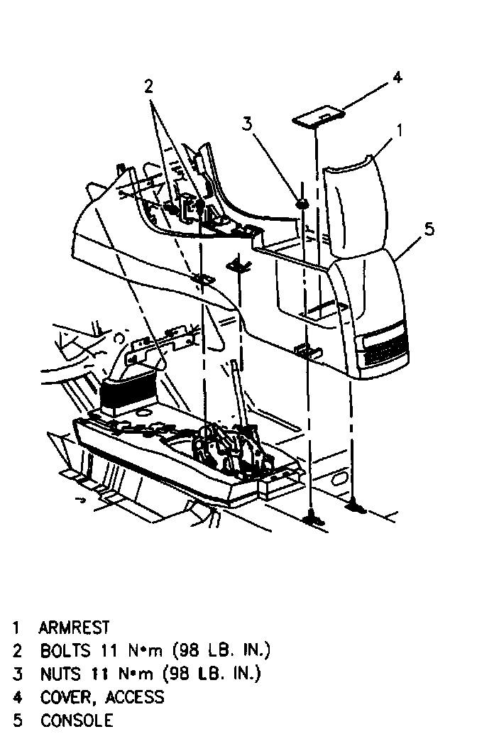 1. Console (5) to vehicle.