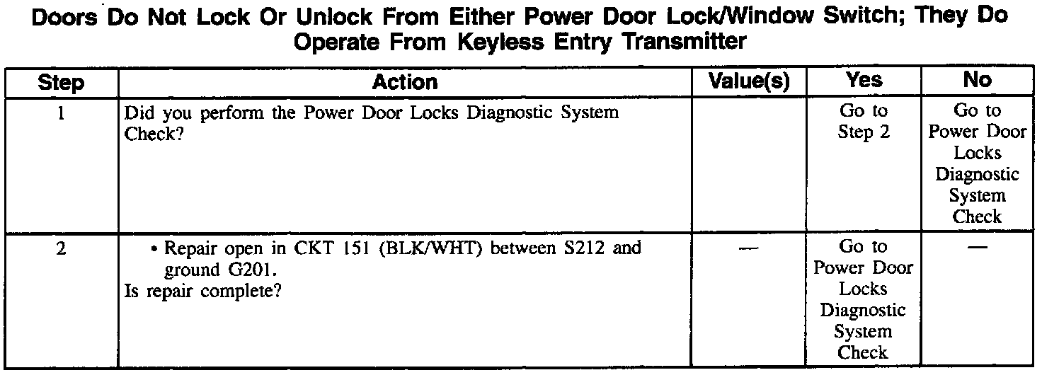Doors Do Not Lock Or Unlock From Either Power Door Lock/Window Switch; They Do Operate From Keyless Entry Transmitter: