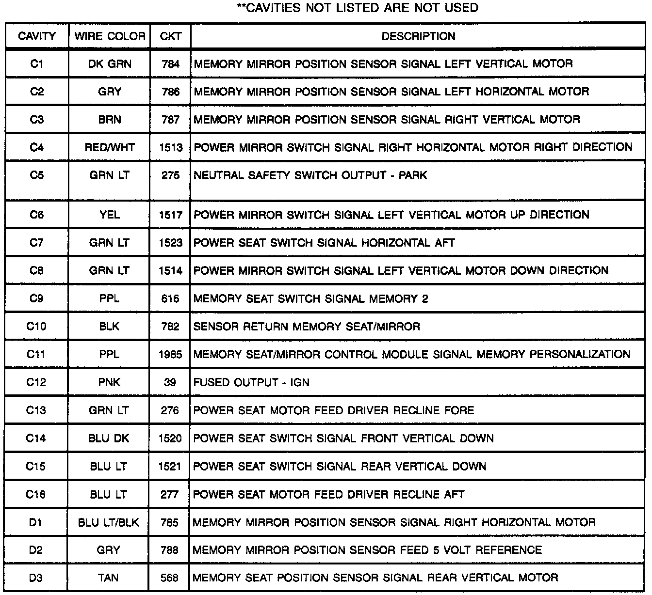 Memory Seat/Mirror Module C1 (Part 2 Of 2):
