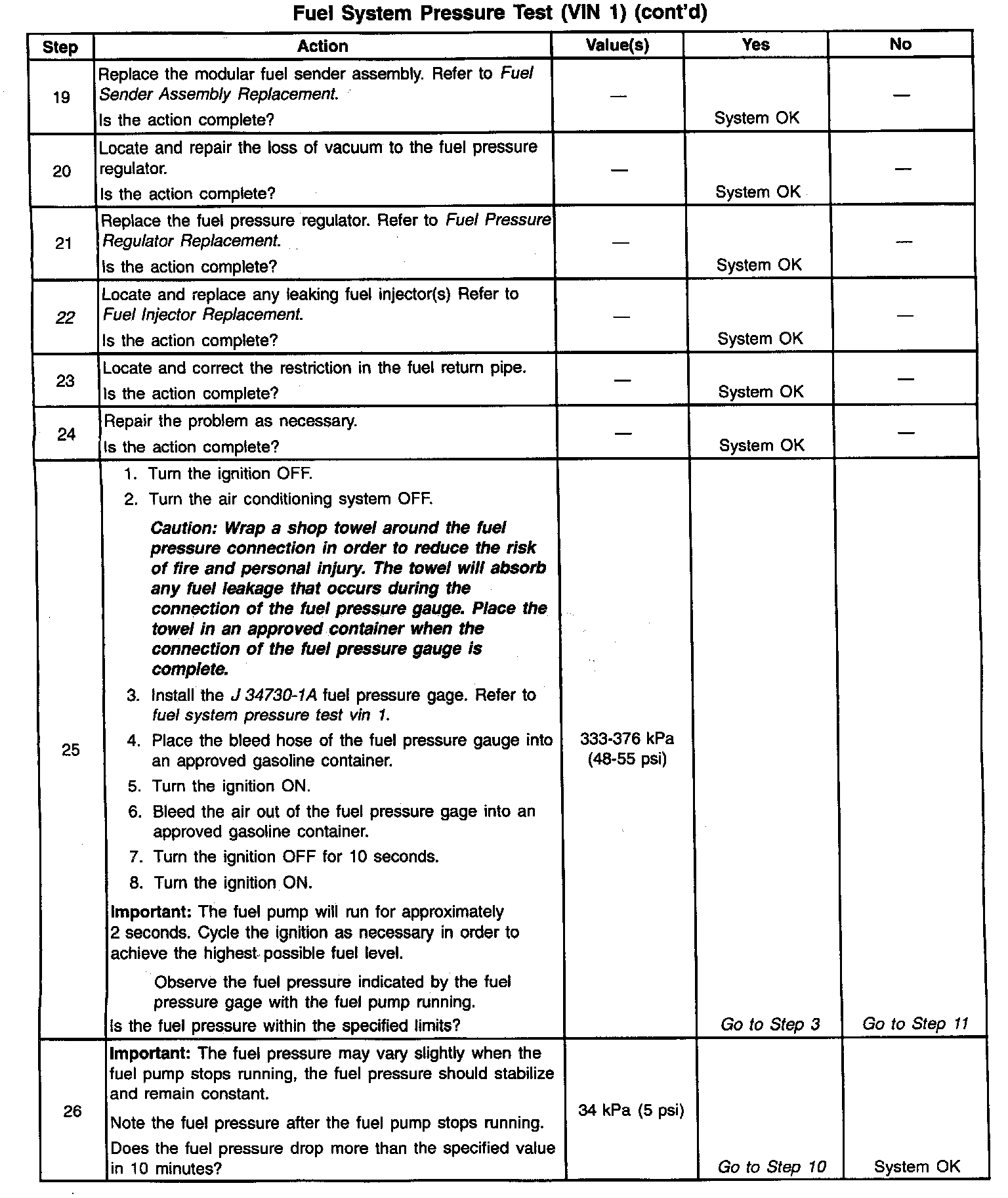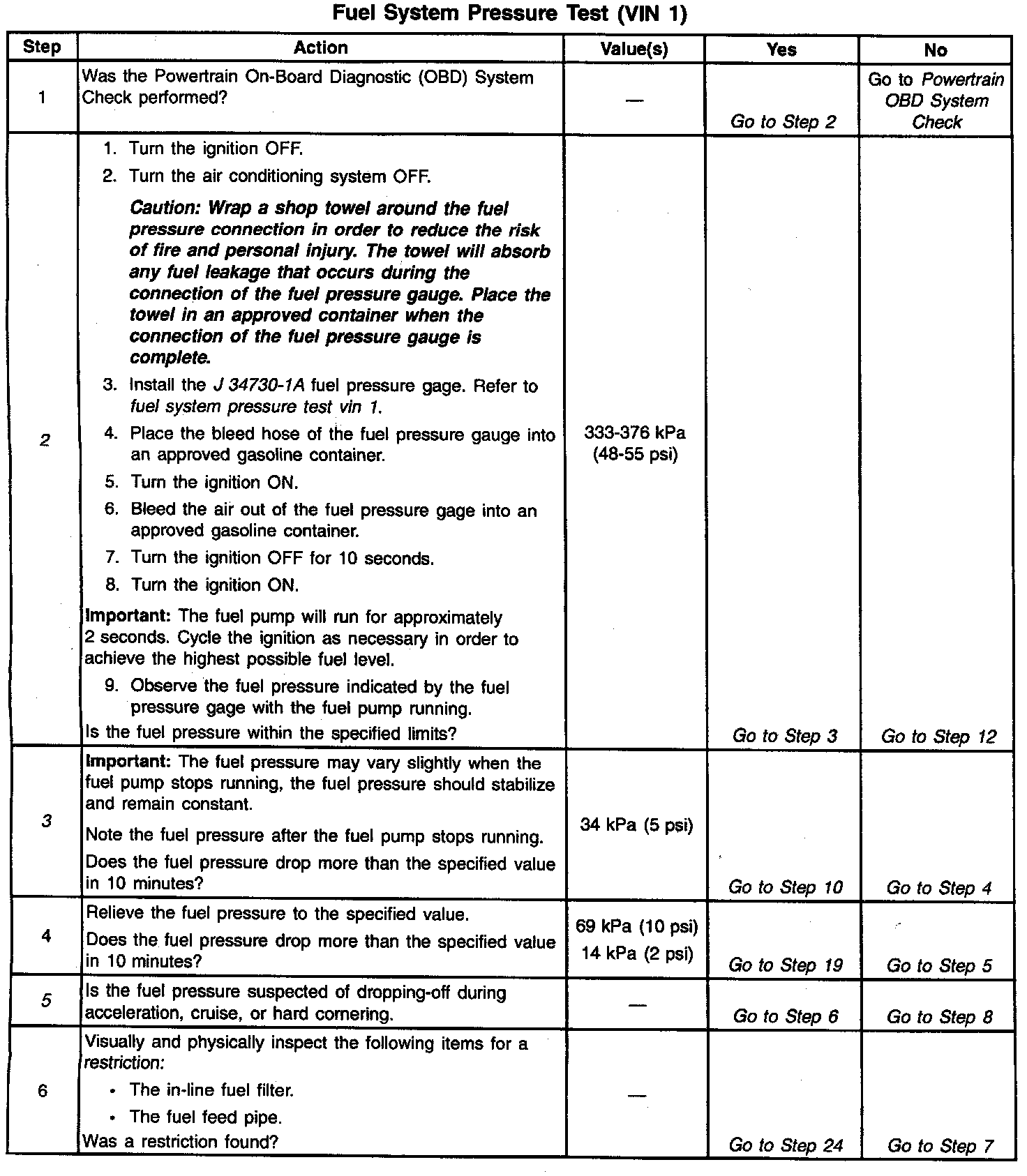 System Diagnosis - Fuel System Pressure Test