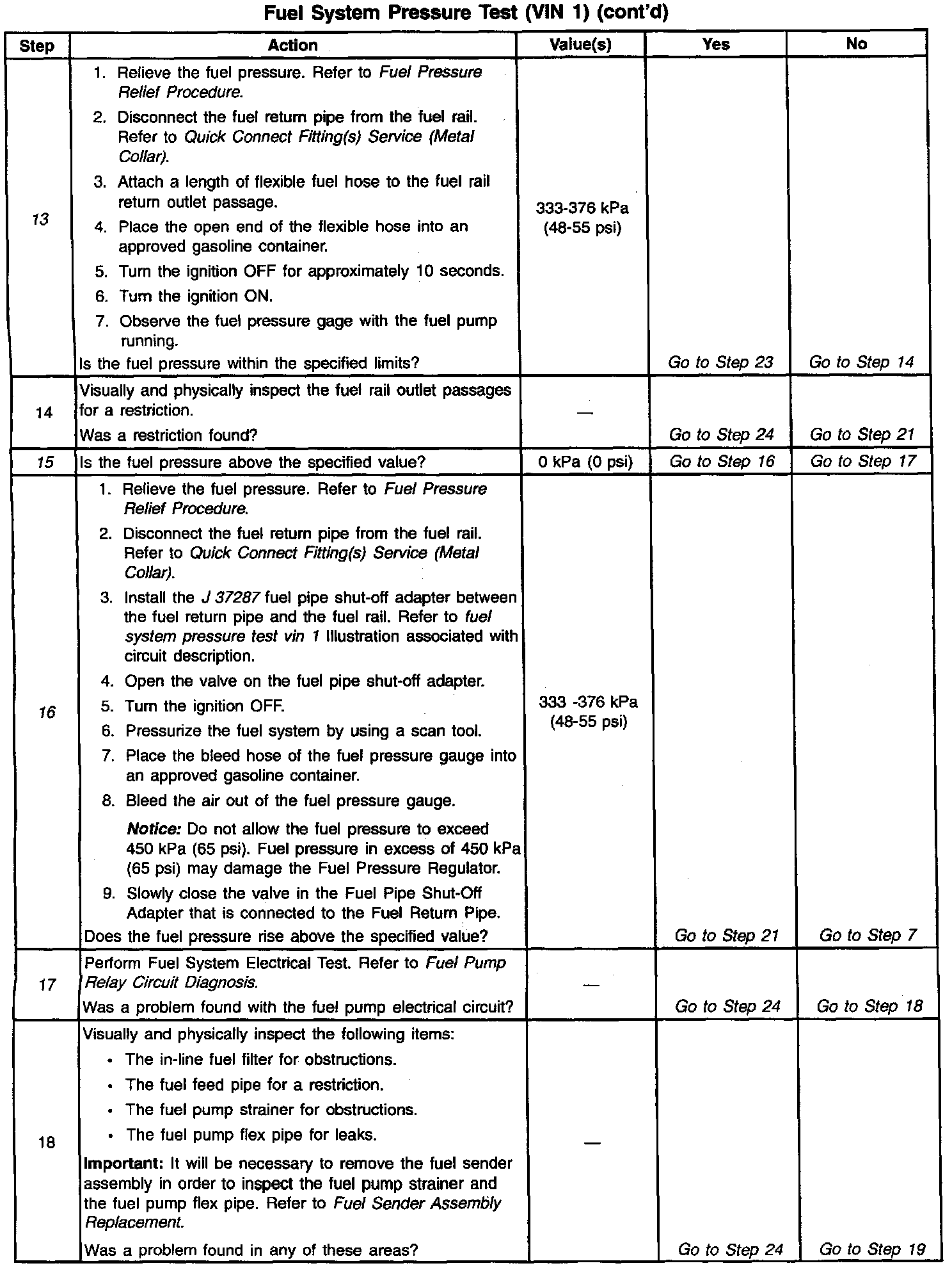 13. This test determines it the high fuel pressure is due to a restricted fuel return pipe or if the high fuel pressure is due to a faulty fuel pressure regulator.