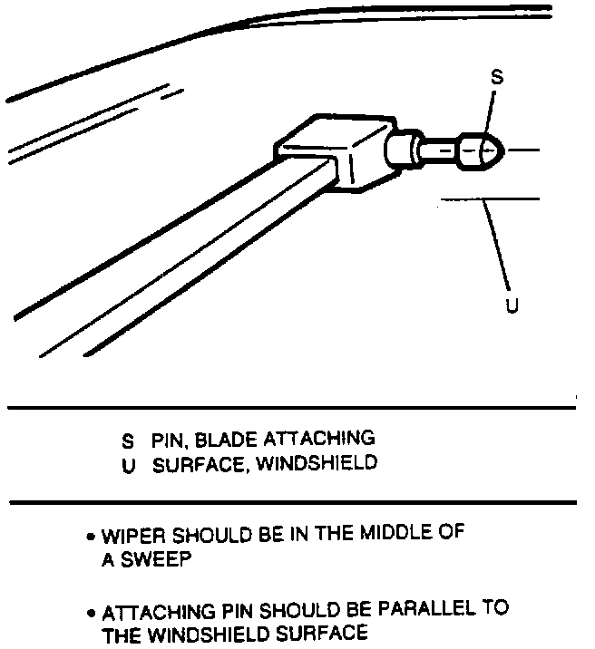 3. Attach a scale to wiper arm attaching pin and measure the force required to lift wiper arm perpendicular to windshield to a normal working height (height with blade assembly attached).