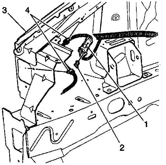 5. Install the Connector Position Assurance (CPA) (2) to the inflatable restraint front end discriminating sensor harness connector (1).
