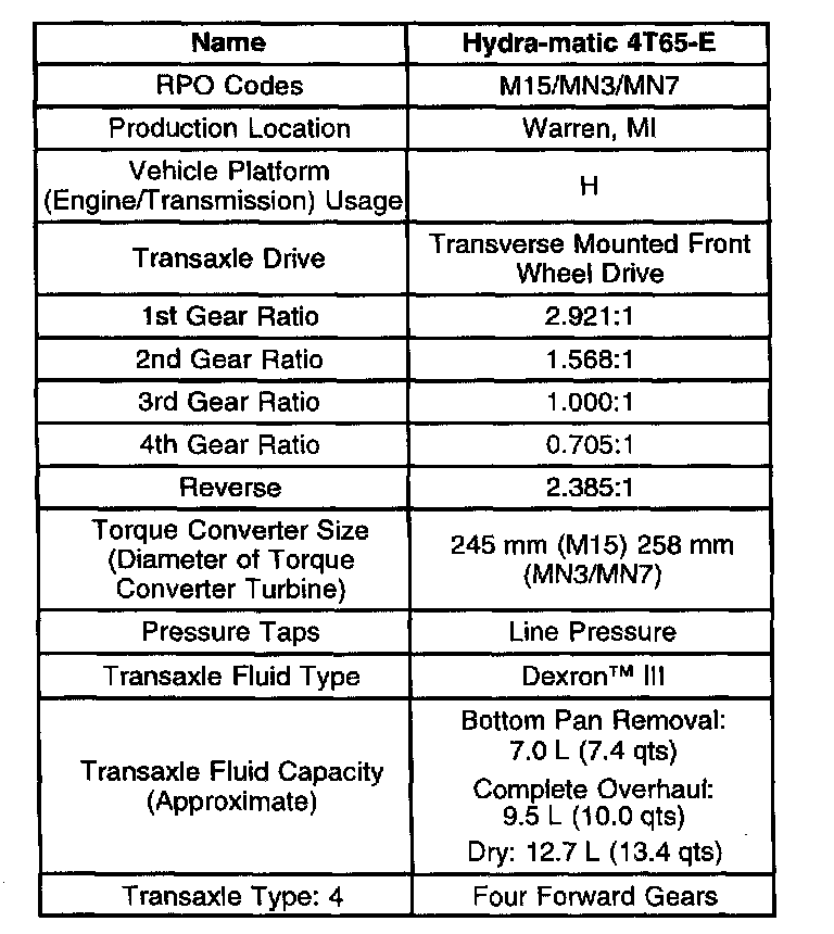 Torque Converter Size (Diameter Of Torque Converter Turbine) 245 mm (M15) 258 mm (MN3/MN7)
