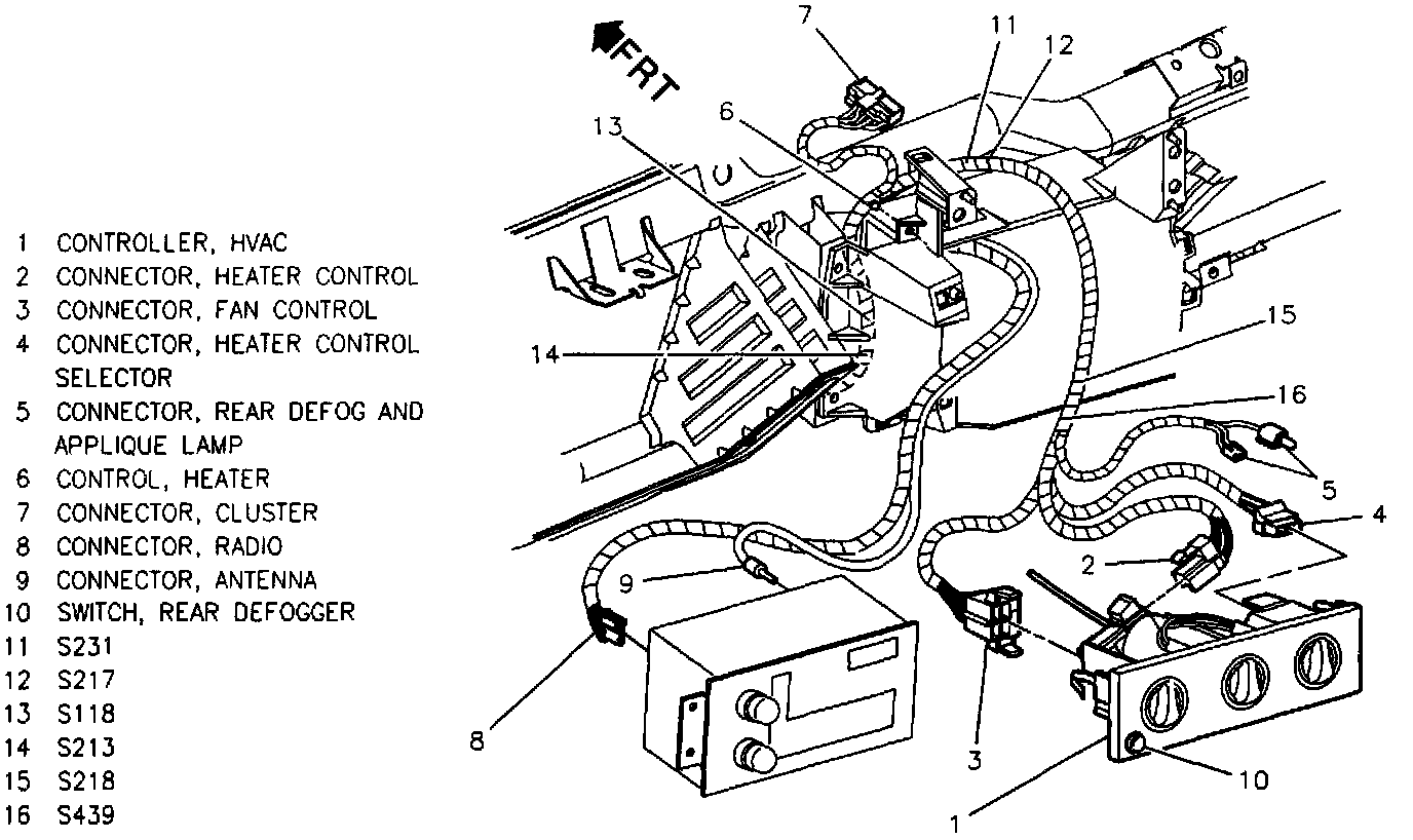 Center IP Near HVAC Control Assembly: