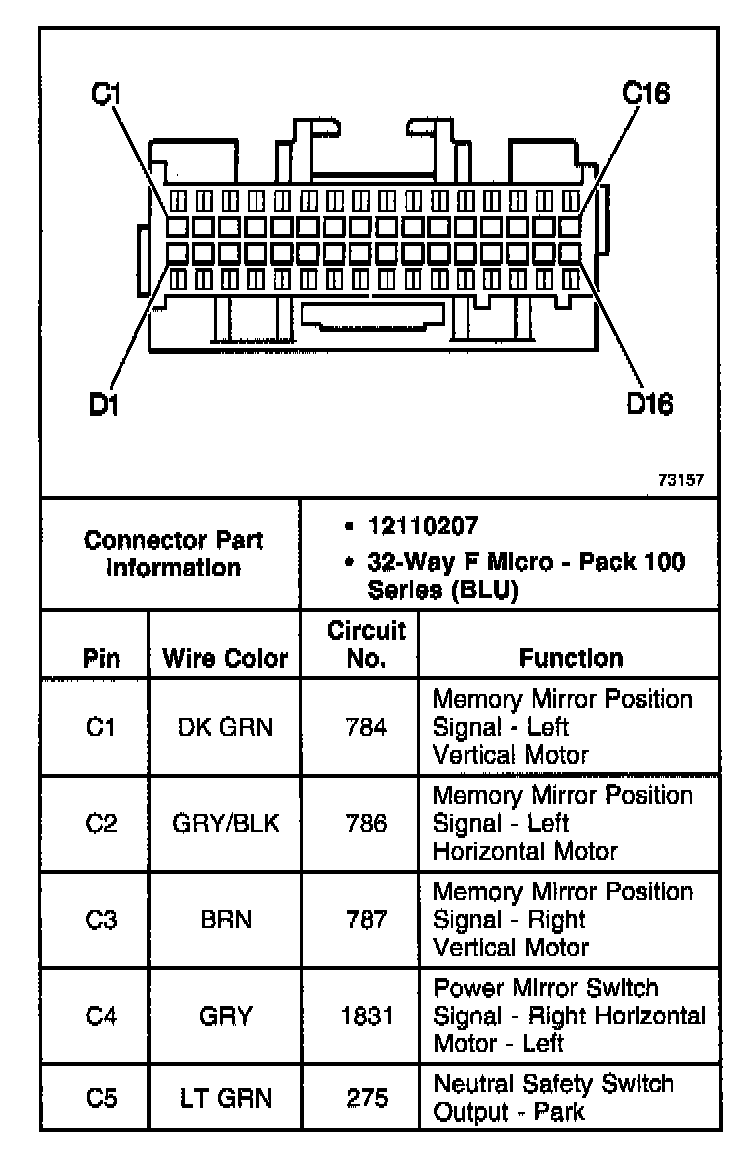 Memory Seat / Mirror Module C2 (Part 1 Of 3):