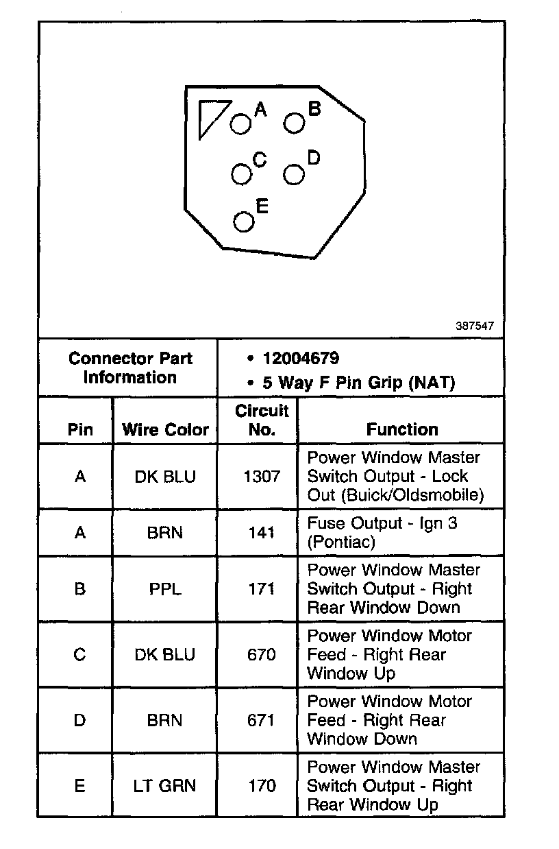 RH Rear Power Window Switch: