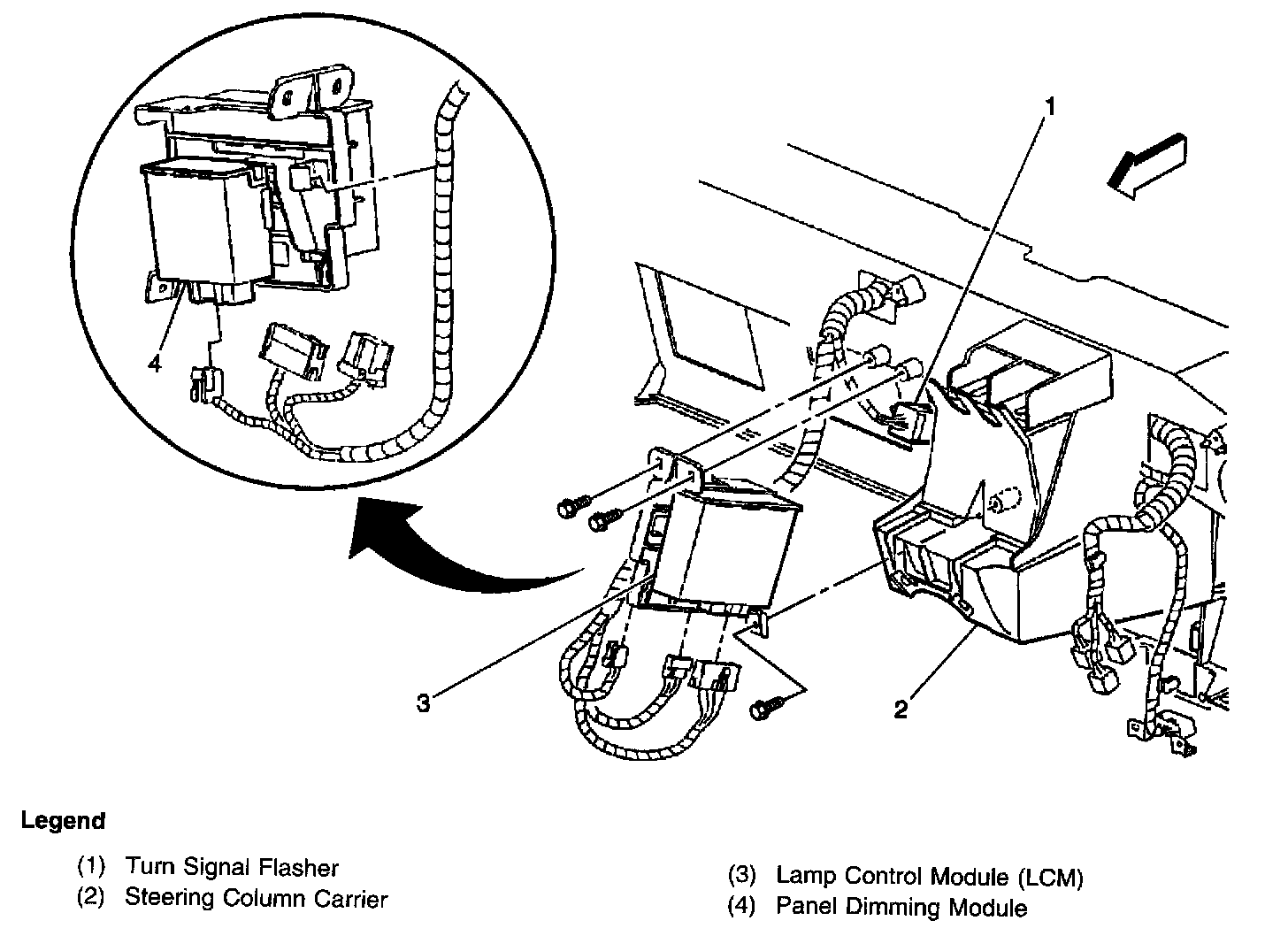 Under the left side of the IP, to the right of the steering column