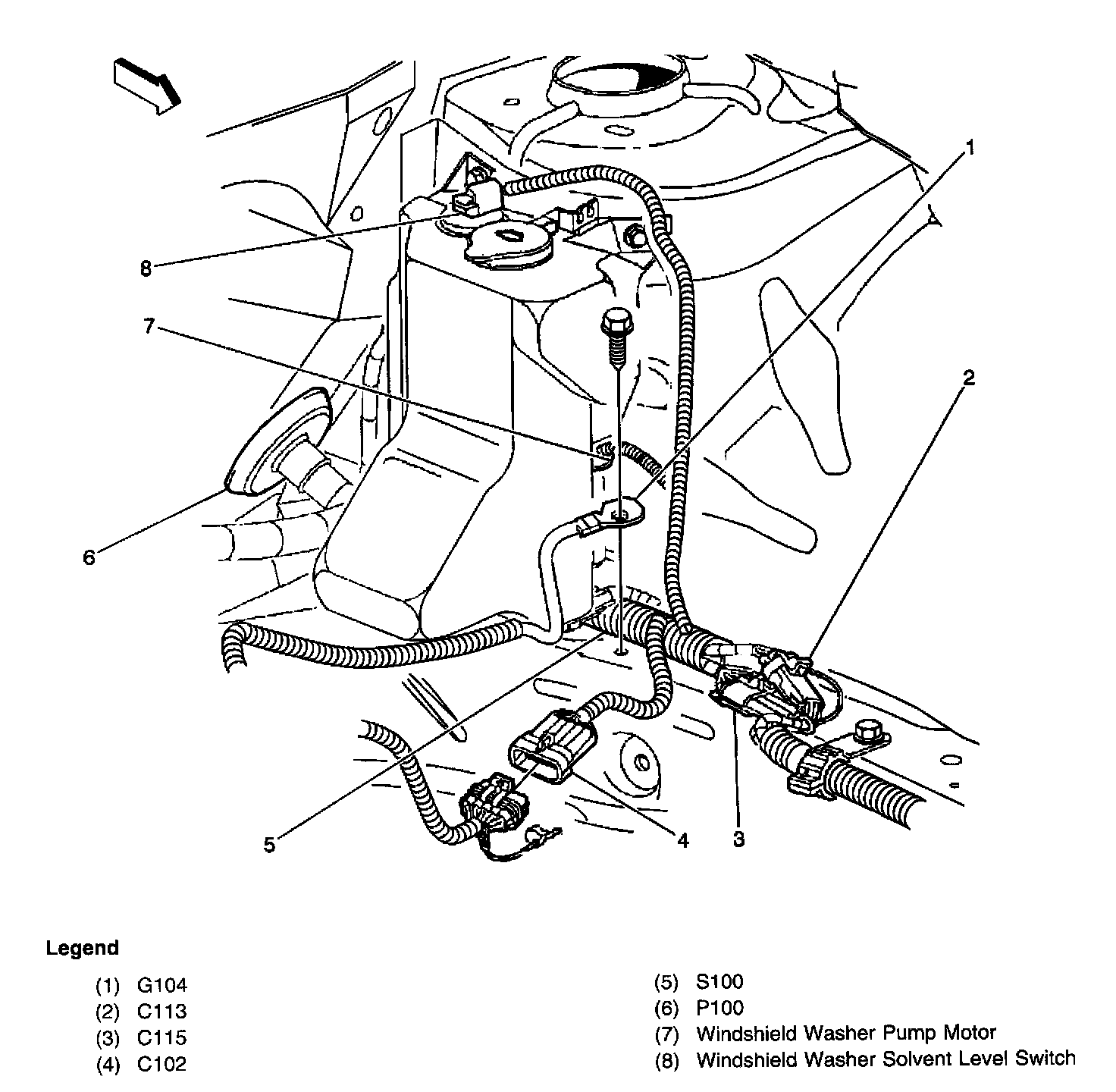 In the left rear of the engine compartment, in the top of the windshield washer reservoir
