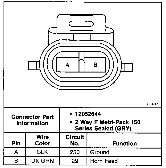 Connector end views show the cavity or terminal locations for all the related 2-pin or larger connectors shown in the system schematic(s). The drawings show the connector's face as seen after the harness connector has been disconnected from a component or mating connector. Unused cavities are left blank in the table.