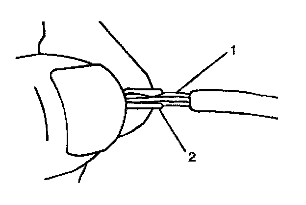 ^ Ensure that each splice is at least 40 mm (1.5 in) away from other splices, harness branches and connectors. This helps prevent moisture from bridging adjacent splices and causing damage.