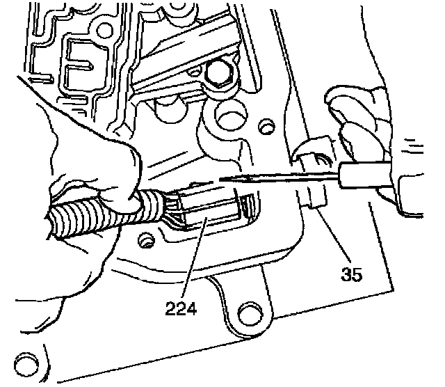 2. Disconnect the wiring harness assembly (224) from the electrical connector (35) in the case.