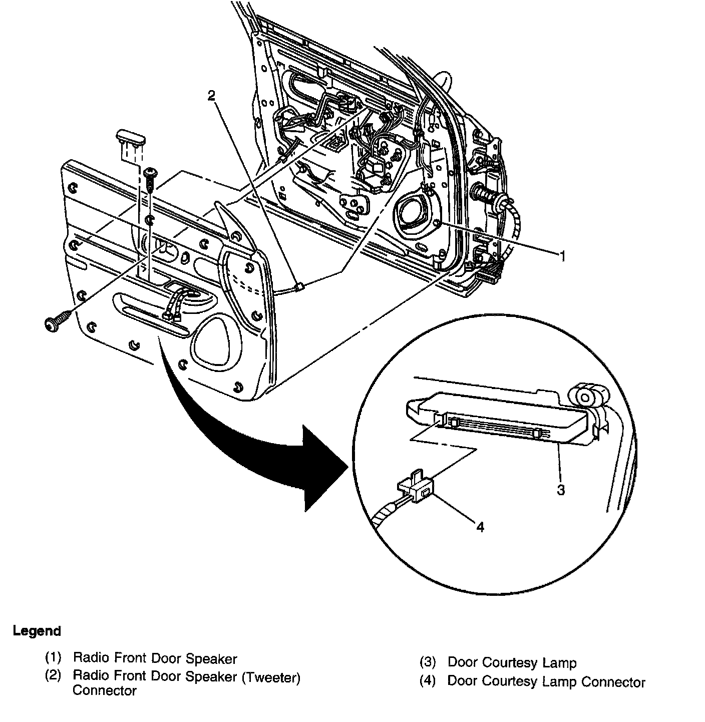 Lower rear of the front door trim panel