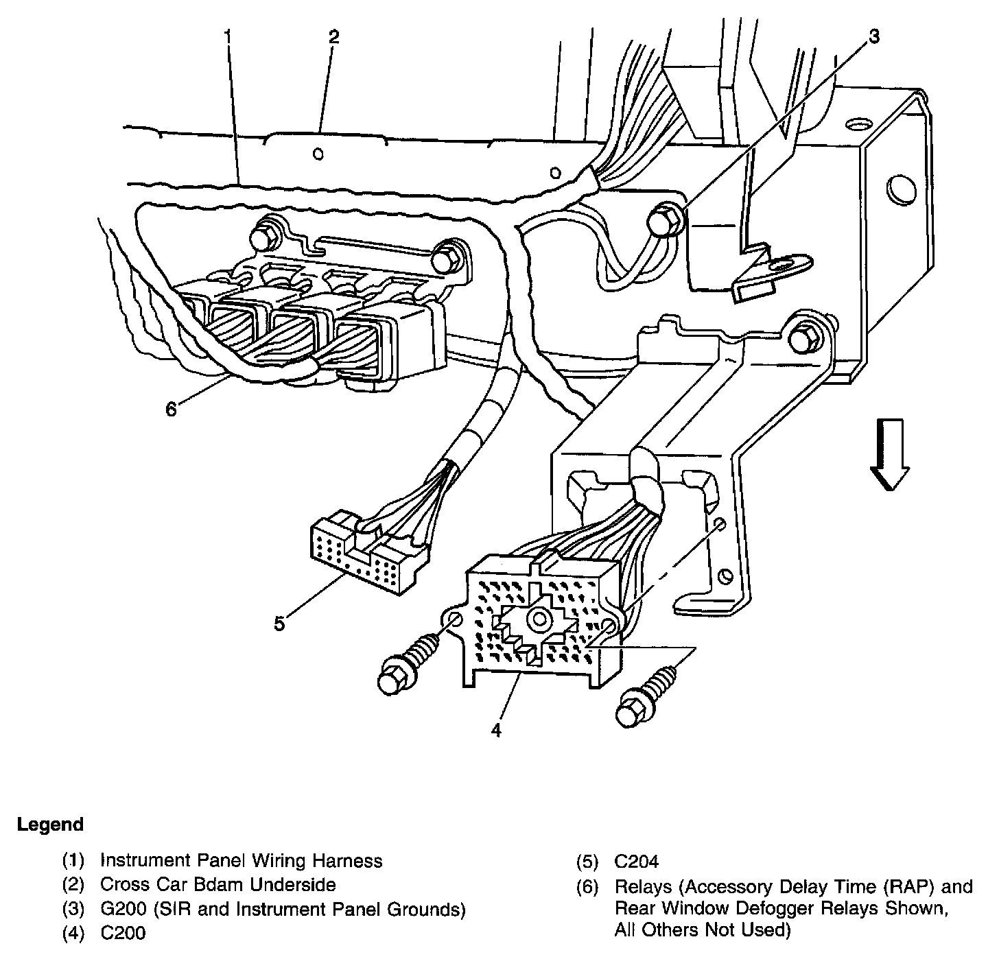 C200, C204 And Relays Behind Right Side Of Instrument Panel: