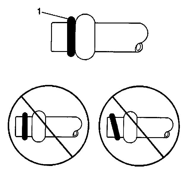 3. For compression-style fittings; carefully slide the new O-ring seal (1) onto the A/C refrigerant hose until seated.