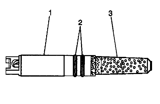 2. CAREFULLY grasp the edge of the expansion (orifice) tube (1) without touching the inlet filter (porous plastic) (3) and insert into the condenser tube until fully seated.