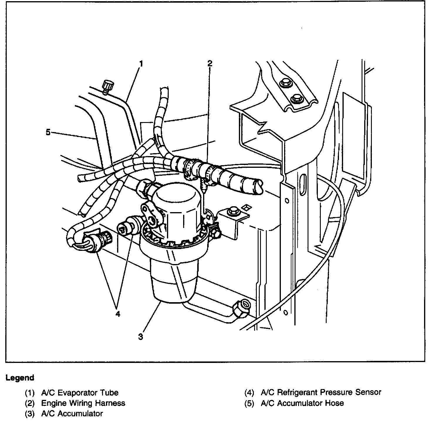 A/C Accumulator And A/C Pressure Sensor - Right Side Of Engine Compartment: