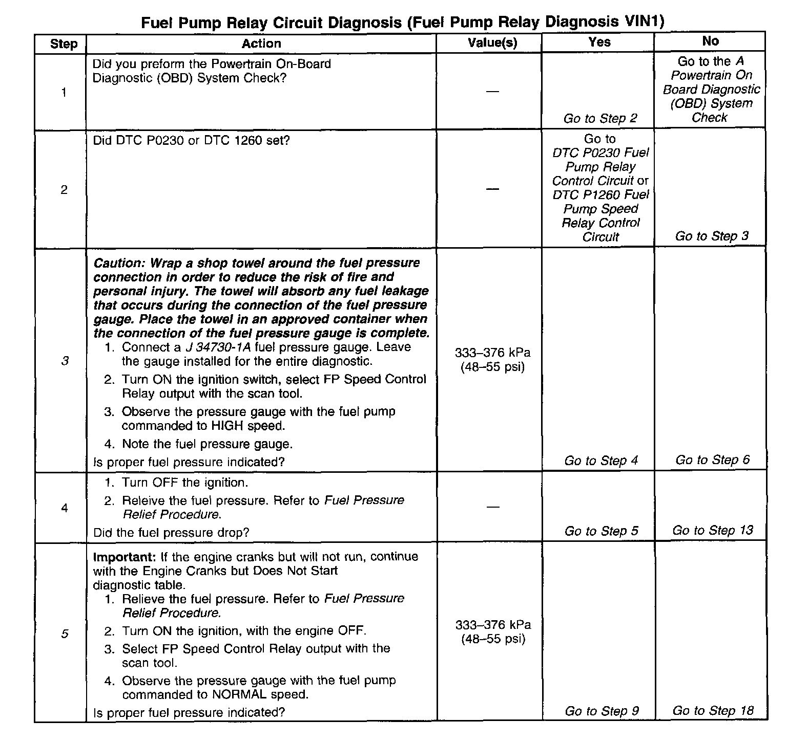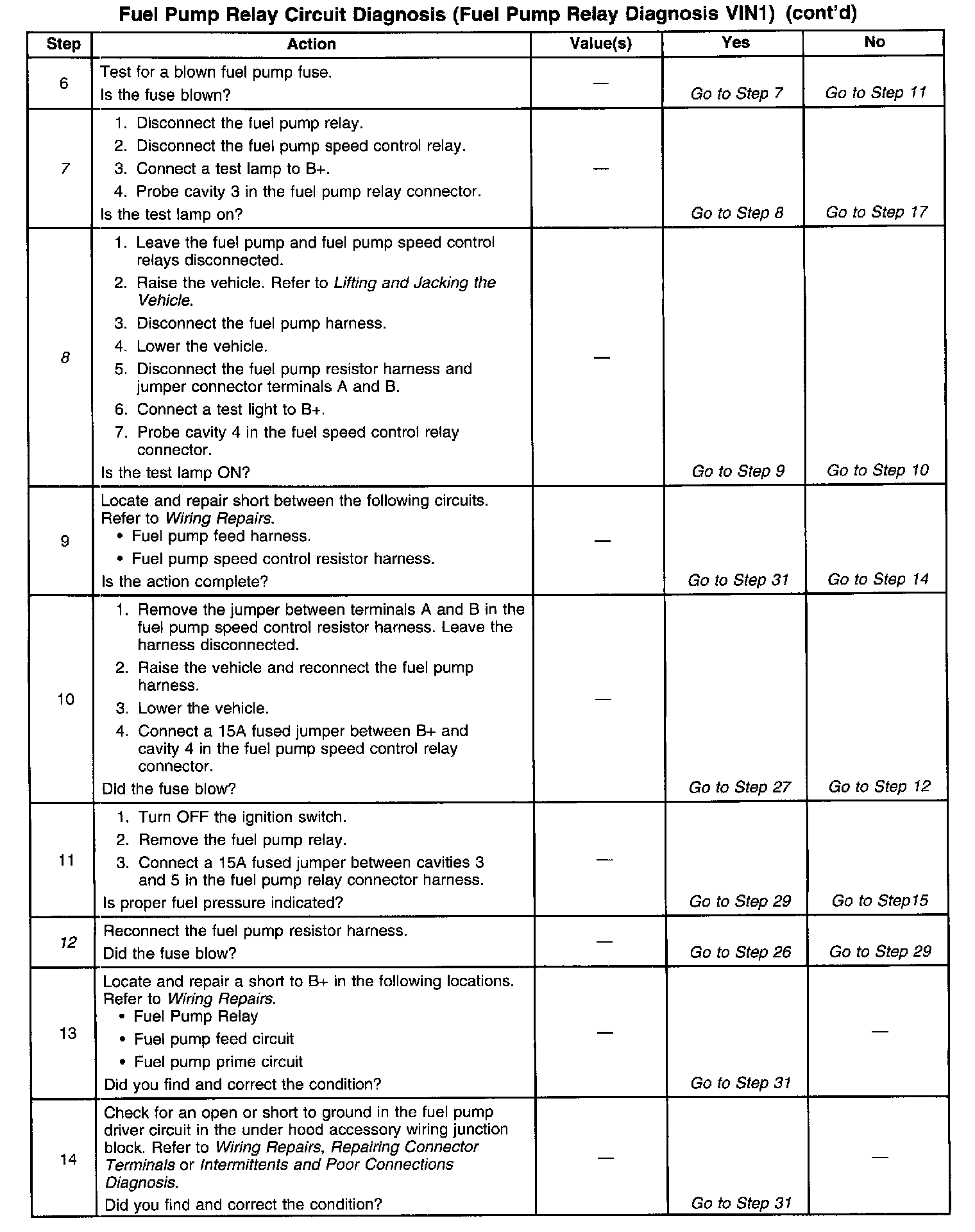 Fuel Pump Relay Circuit Diagnosis