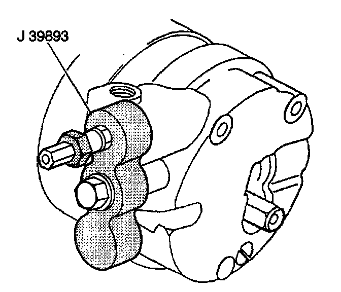 1. With the sealing washers in place, install the J 39893 on the rear head of the compressor.